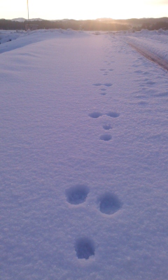 十「渡り鳥さんの聖地は日本海沿いの頸城平野と溜め池ゆえに雪は少ないですが、餌捕りは大変になりますね〜!と、心配しながらも、朝焼けに冷え込んだ銀世界は気持ちい〜いですっ!重くても少しは凍み渡りが出来たり(汗)、ノウサギさんたちの足跡もはっきり分かりまする〜」