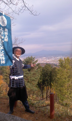 大きな大きな声で、元気な笑顔をお届けいたします(のつもりで…)、(「お、お館様、す、すみませ〜ん」…)誇大表現でジ○ロさまに訴えられそうな拙者は、「越後上越上杉おもてなし武将隊」足軽組頭、やっぱり口軽、十吾郎にござりまするっ!