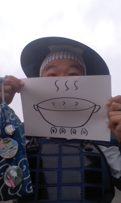 途中、お天気雨にもびくともせず、一枚の田んぼには、百羽近い白鳥さまが集団でお食事中…(防衛対策にせよ、やっぱりみなさまそろっては微笑ましいですねっ!)。(ちなみに、この絵はもちろん「お鍋」ですがっ!…ですよね〜!?)