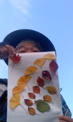 さて、荒れた天気の時は、お休みでも「外出したくない!」と思われまするか!?そんな時には、「じゃ〜ん」「♪落ち葉でお絵描き〜」…。(突っ込みはご遠慮いただき…2)よろしかったら試してくださいませっ!