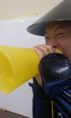 大きな大きな声で、元気な笑顔をお届けいたします(のつもりで…)、「戦」は苦手ではありまするが、時には、おもいっきり振り切りまする〜足軽「組頭」十吾郎ですっ!