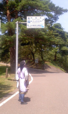十「ここでお勧めを…。我らが本陣から歩いての登城です。分岐点を左に、中腹に立つ¨謙信公銅像前広場へ、または右に、正規の駐車場から石段を駆け上がり春日山神社さまへの15分ほどを、緑を浴び、生き物を感じながら…。」