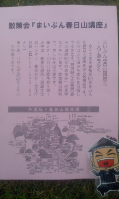 十「やはりこちら〜!お館様¨謙信公が居城¨春日山をより堪能いただけまするっ!11日(日)9時からは、申し込み不要・参加無料、学芸員さん案内による¨まいぶん春日山講座?です。麓の我らが本陣を出立し、一部復元されている後の正面玄関¨大手道から本丸を目指します…。」