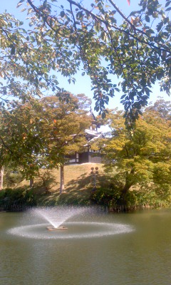 ※高田城址は高田公園の桜も少しずつ色づき始め、外堀一面の蓮も紅葉しているかのようです…。