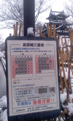 「高田城、赴き醸す、雪化粧…。」※三重櫓の開館は2月末まで毎週金曜 〜日曜と祝日です。かんじき貸出も〜