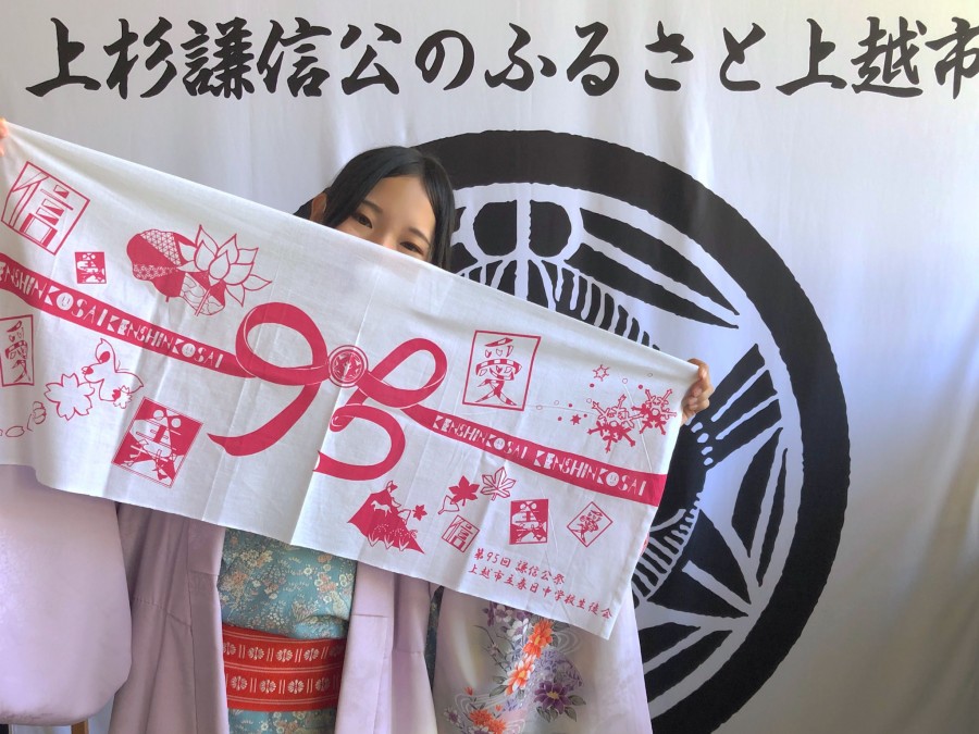 謙信公祭の企画で行われていたスタンプラリーの、抽選で200名に当たる手拭いがなんと!