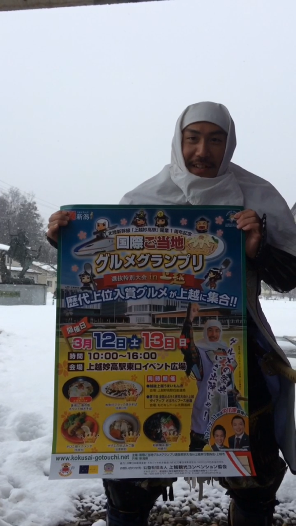 さて、その雪が溶け始める3月には、北陸新幹線開業1周年目を盛り上げる記念すべき食の戦「国際御当地グルメグランプリ 選抜特別大会 いん 上越」が開催である!