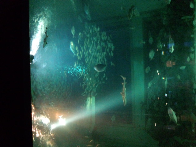 そして奥へと行きますと、大水槽にて、光と音で水槽が幻想的に彩られておりました☆彡