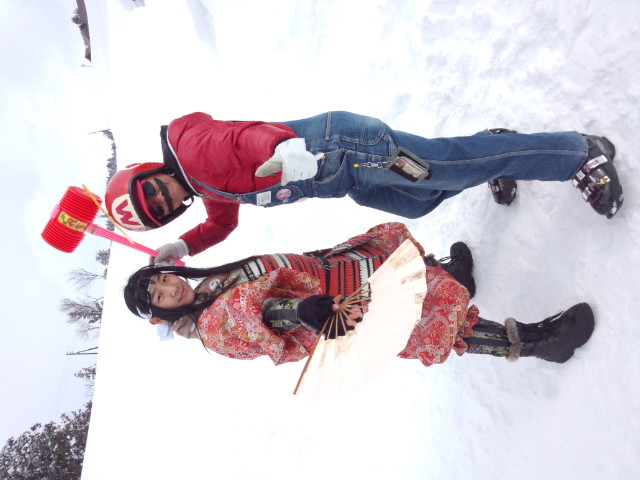 スキー場にはあったかいい格好がよろしゅうござりますなあ。