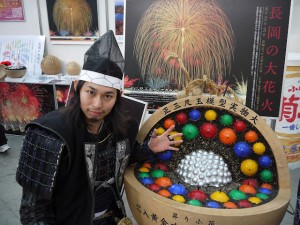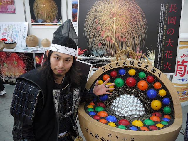 越後ブースに展示された長岡花火で打ち上げられる三尺玉の模型だな。