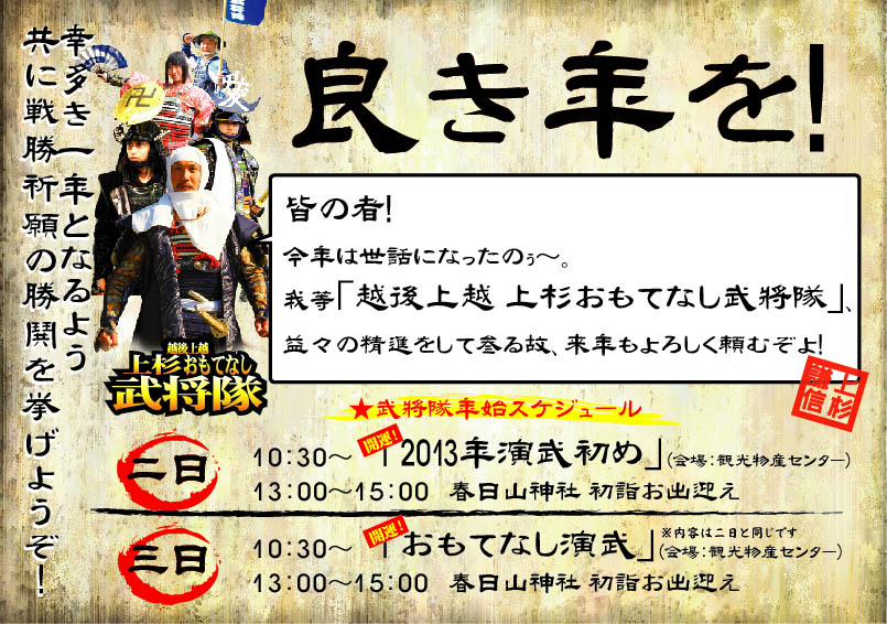 いよいよ本日、我等上杉おもてなし武将隊も今年最後の出陣日!「出陣納め」である!