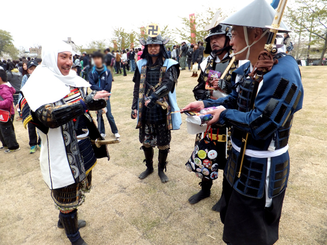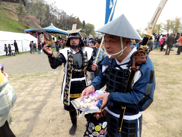 上杉おもてなし武将隊のリーフレットを配り始める片倉小十郎景綱殿