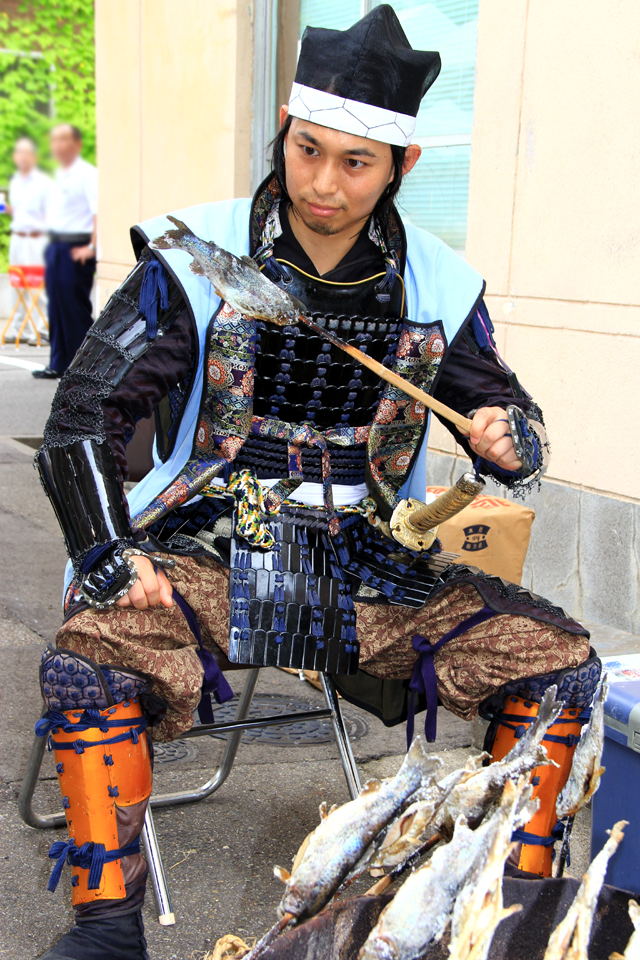 竹串に刺した川魚の塩焼きを食すお姿が戦国時代っぽくて?良いです!