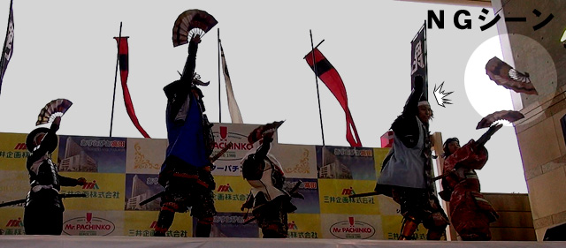 扇子演武「汪義」。元々強風であったこの日。「強風×扇子」という組み合わせに既に嫌な予感がしていたのだが…