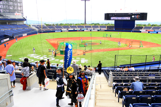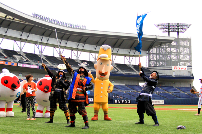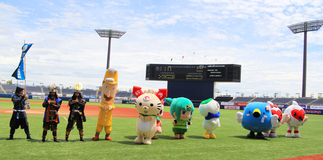 我らも「ご当地PRキャラクター」という枠組みで、越後のゆるキャラたちと共に球場に降り立ったぞ…!