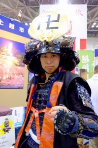 新潟県ブースの我らが上越エリアではわしの兜体験が出来るという企画もなされていた。