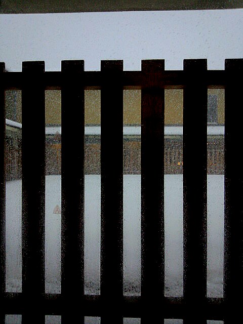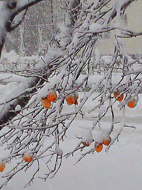 陣中おもてなしが終わり、ふと外をみやると、外の柿やらお館様の像が雪をかぶり、中庭が雪に埋もれつつありました。