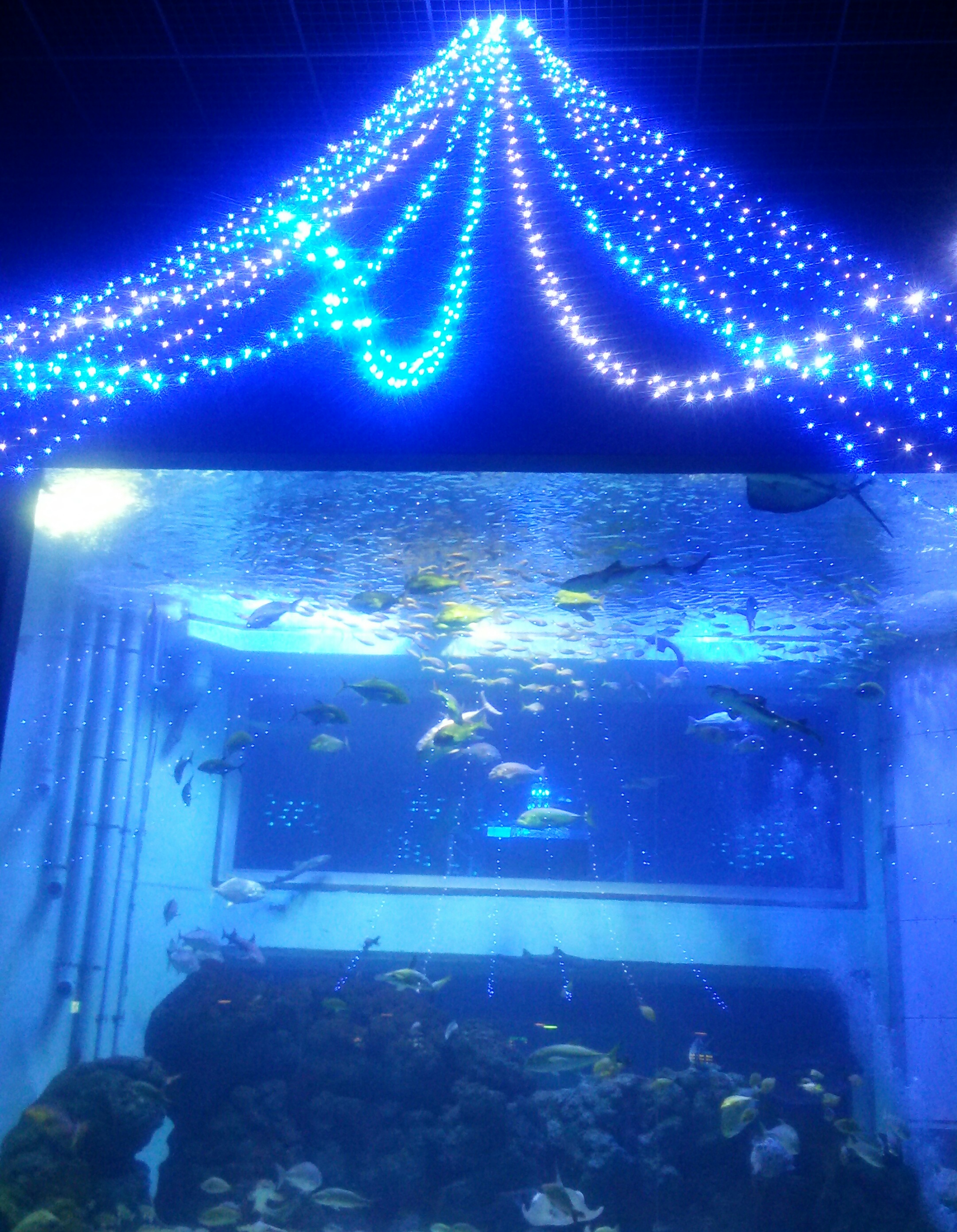 11月28日(土)~12月25日(金)までマリンクリスマスという催し期間でなサンタクロースがダイバーになってマリンジャンボなる大回遊水槽を泳ぐのだ。その中にはアカシュモクザメ(ハンマーヘッドシャーク)が最近になって入ったらしい。
