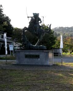 我らの本陣、埋蔵文化財センターの、馬上謙信公の銅像の写真!