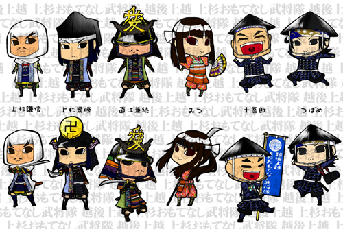 この度、上越市・春日山城をPRしている上杉おもてなし武将隊をより多くの方々へ親しみをもって知って頂き、更なるPR力アップの為に武将隊をモデルとしたキャラクターをつくりました。