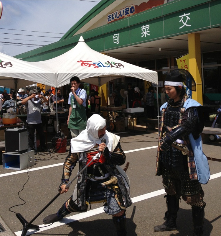 新じゃが袋つめ放題やたけのこ汁お振舞い、米争奪じゃんけん合戦と、催し物も沢山過ぎて熱い戦に儂もおもわず魂が熱くなり、つい「まいく」に向かって、