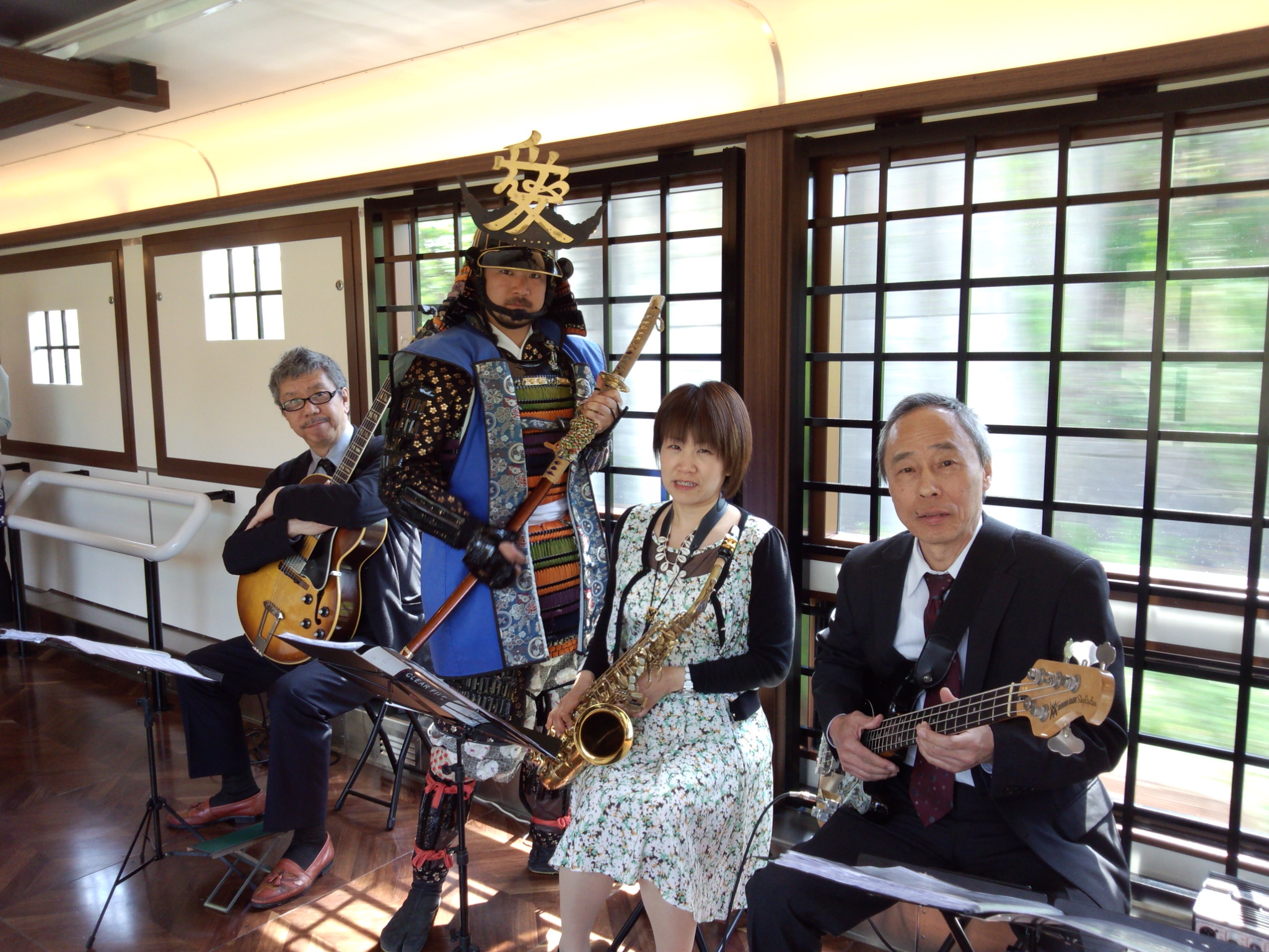 真ん中の2号車では、決まった区間でジャズの生演奏を聞く事もでき、美味しいお酒と日本海を楽しみながら、素敵な音楽に酔いしれる。。。