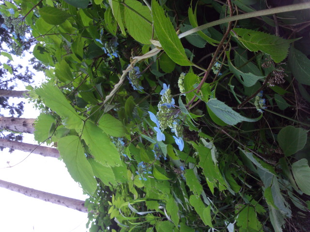 帰りしな、ふと見れば階段脇の紫陽花が既に花を咲かせておりました!!
