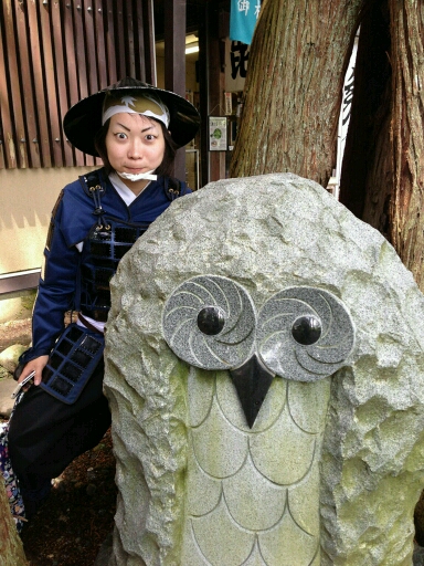あら、つばめ様も景勝公と同じようにふくろうのまねをしてますね。武将隊様の間で流行ったりして(笑)。