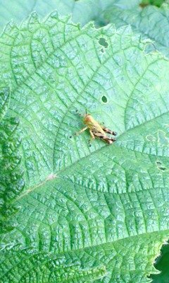 …小さな飛蝗(バッタ)さまの赤ちゃんが、フキの葉っぱを食べつくし、穴だらけに…(すみません、写真は違いまする…)。「田んぼを愛し、生き物と語り合う」…と、お伝えしていながら、お恥ずかしいっ!突如、目に入ってしまい…(と、言い訳でした…)。
