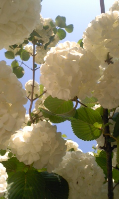 里山の「手裏剣」ならぬヤマボウシに続き(拙者が勝手に名付けました…)、我らが頸城平野の庭先では、たくさんの真っ白い、まさに「鞠」が咲いているかのような花を見かけまする…(ヤブデマリの園芸種、オオデマリかと…)。