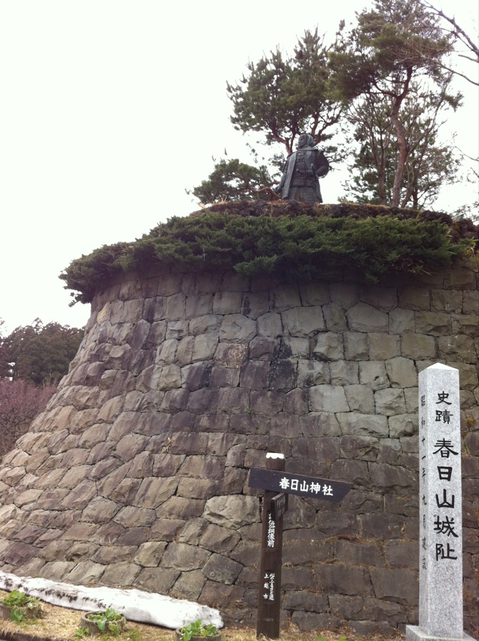 新しき上杉おもてなし武将隊、出発の日に向け、天も祝うかの様に雪も溶けて春日山城に日が差し込んでおる!