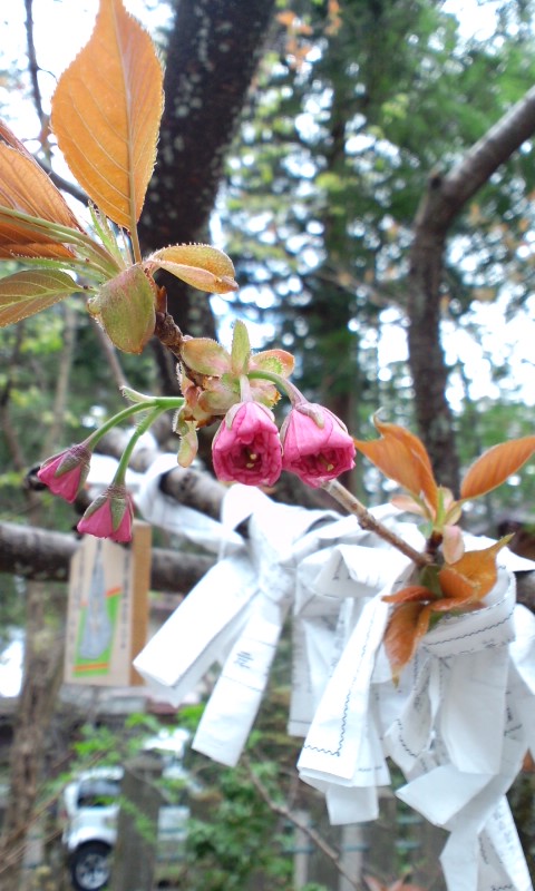 そして、境内奥…おみくじを結わえる為の縄が渡してある場所の八重桜が…もう少しで花開きそうで御座いました☆