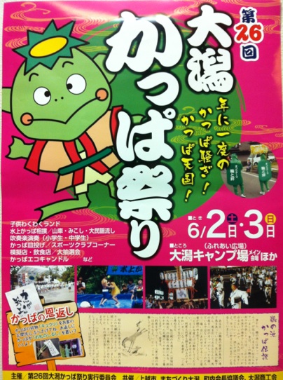 長文になってしまいましたが、当日は皆様にお会いできるのを楽しみに、もう少しだけ冬眠ならぬ水眠をして、かっぱ祭りに備えたいと思います。日々のおもてなしがんばってください(礼)