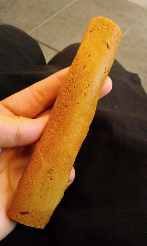 小麦粉に黒糖を加え焼き上げた、茶色くて扁平な細長い形のお菓子で御座います☆