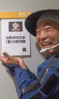 お祭りを盛り上げるうんまぃ匂いに始まり、いやいや、ゆるキャラ「かねたん」さまに元気に迎えていただき、昨日、初陣を飾られた、第三期「山形おきたま【愛】の武将隊」さまと共闘…。いろいろとご配慮いただきました…。