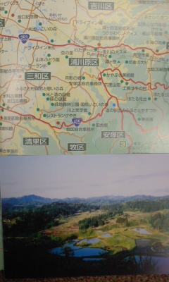(…十吾郎、お主、紹介する…と、言っておきながら、今日、見に行ってないではないかっ!絵葉書と地図でごまかしおってっ!まったく、まったく…。十吾郎はほっておいて、『ここから見る棚田はいいよっ!』と、みなさまのお勧めをこっそり教えてくださいませ…。昨日も反応いただき、ありがとうございました…。十吾郎の監視役、by天の声…)