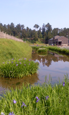 春日山の麓、「100名城巡り」のスタンプなる印が置かれておりまする「ものがたり館」には、一部復元された「監物堀」があります…。今年も、カキツバタなどなど見ごろを迎えておりまするっ!「水」と「花」のコラボなる共演も、ぜひともお楽しみくださいませ…。