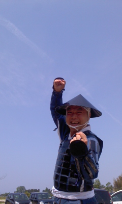 まさに「梅雨の中休み」の本日…。我らが頸城平野は、朝から快晴…。(相も変わらぬ「やぁ〜っ!」姿ですが、この空のように)気持ちいい青い空、爽やかな風…。いや〜ありがとうござりました…。